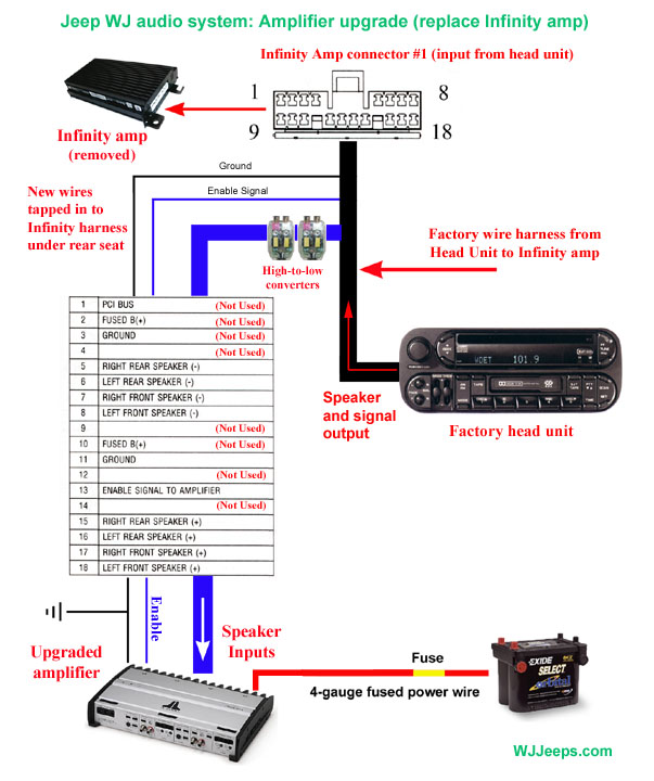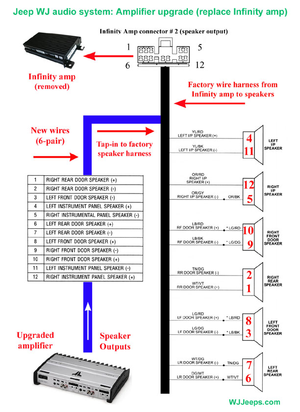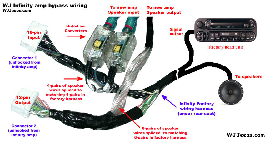 10. Speakers: Aftermarket speakers to factory speaker harness Back to Accessories index Adaptor to connects aftermarket speakers to factory harness (1999-2004 WJ). Allows factory wiring to remain intact with no cutting or splicing. Autotoys.com P/N "SC 4500 SPEAKER". Note- we still need to verify this part as working with all models.