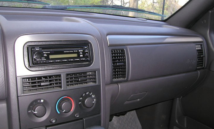 Aftermarket radio trim kits (1999-2004 WJ). Adaptor and brackets to fit aftermarket radio into WJ factory radio opening.