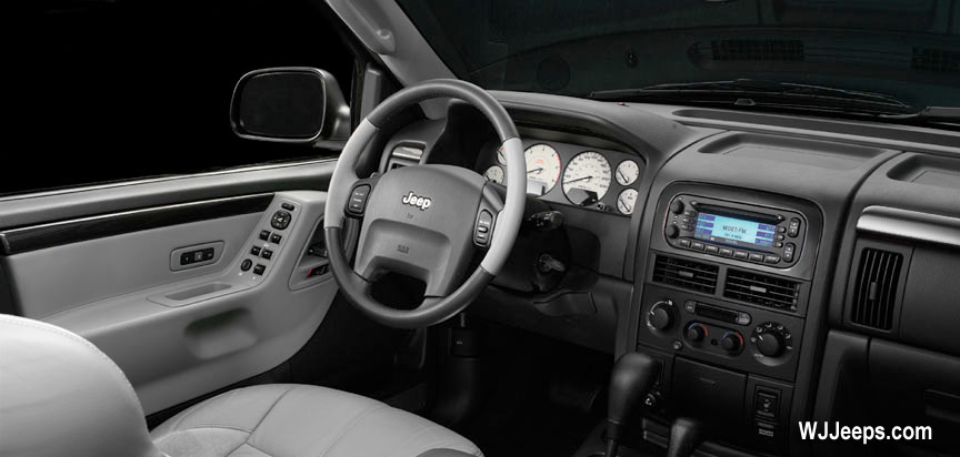 *Note per the interior photos shown above - these photos were obtained with some related "Black Pearl Series" press materials from a Jeep source in Europe. These photos show an "AutoStick" shift mechanism (with some sloppy photo touch-up) and control panel that is not on the Black Pearl Series vehicles, and in fact has never been featured on any Grand Cherokee model. It may have been that Jeep had plans to add the "AutoStick" feature to this or another model and later abandoned the idea. The "AutoStick" feature, however, will appear as an option on the new 2005 Grand Cherokee. |