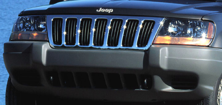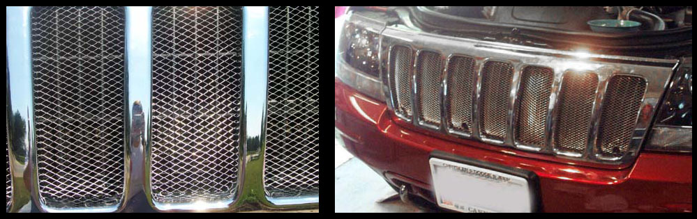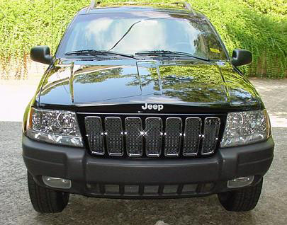 1. Stull Industries diamond wire grille insert model #2012, custom pre-cut from the factory. The grille insert features a 304 woven stainless steel mesh and 304 stainless steel rod. This specially engineered insert is designed to install without any modification to your Jeep and can be installed with common hand tools. Shown in photo # 1 is Chris Henry's 2001 Limited. The Stull insert for the WJ retails for around $130. More information can be found at Stull Industries.com.