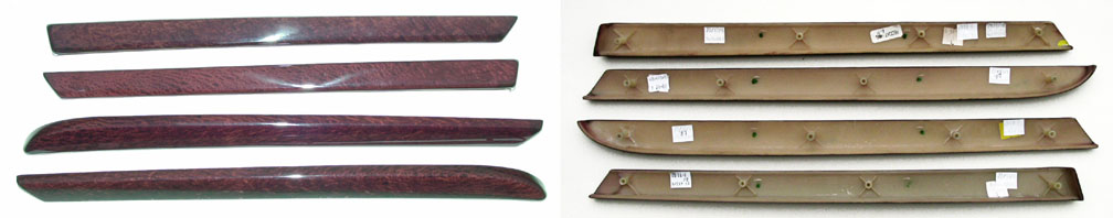 New molded dash trim appliques are now available that will fit nicely over the front factory trim pieces without removing them (See the Aftermarket Dash kits page). Owners who want to upgrade to the real wood Overland trim strips will have to remove their existing strips as no aftermarket trim kits match the Redwood design.