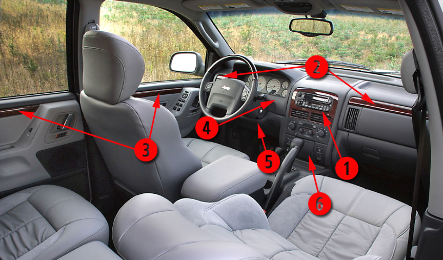 The Spartan Burl door trim molding strips are not available separately as replacement parts, the entire door panel must be purchased. The Redwood strips used on all Overland models, however, can be purchased individually and installed into other WJ door panels. Since the matching dash strips and the radio bezel for the Overland are also available, Limited owners can order all seven parts and have the real redwood interior. The woodgrain Overland steering wheel, although very expensive, is also available.