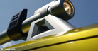 The Treo’s shape narrows front-to-back, and culminates in a dramatically tapered tail, which is augmented by twin, high-mounted spar wings that serve a triple functional role as running, brake and tail lamps, cooling air intakes and as the exterior mounting points for twin Jeep Rubicon bikes.