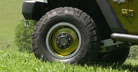 Also standard on the Wrangler Unlimited are a Dana 30 front axle, a rear heavy-duty Dana 44 axle, 30-inch tall R15 Goodyear Wrangler GSA tires, 15-inch Ravine aluminum wheels, high-pressure gas-charged shock absorbers with a 3.73 axle ratio, fog lamps and tow hooks.