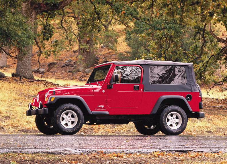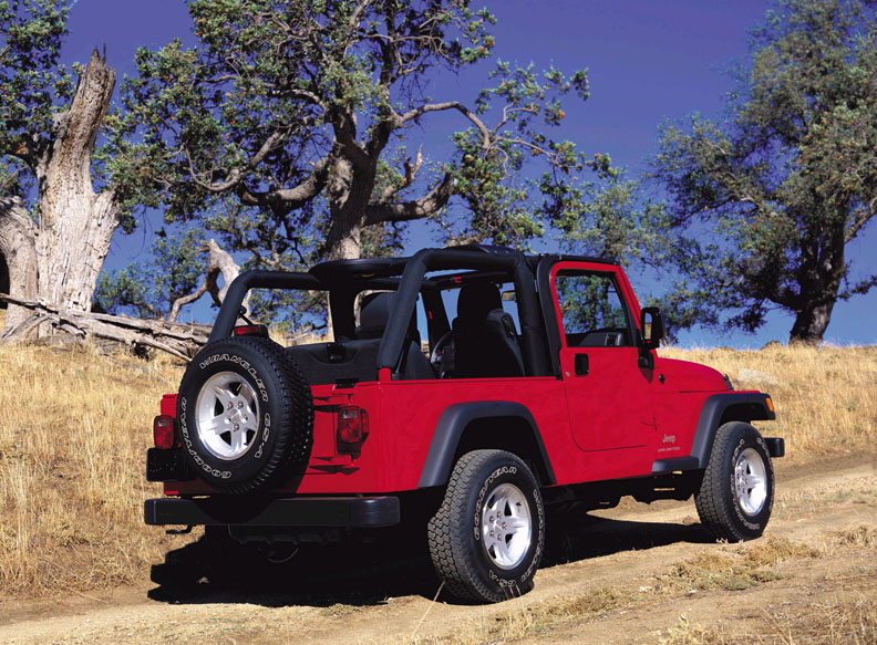 Standard features on the Jeep Wrangler Unlimited are full-steel doors with deep tinted windows, Sunrider™ soft-top, padded Sport Bar, air conditioning, AM/FM stereo radio with CD, easy access tip and slide front seats, fold and tumble rear seat, front and rear floor mats, next generation air bags and power steering.