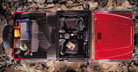 The overall effect of the Treo interior is one of spaciousness and usability. Future-tech materials mesh with tactile textures and surfaces, which results in an interior environment that’s bright, open and functional. The Treo’s rear seat can be folded to store more gear, although the front wheels from the exterior-mounted Jeep Rubicon bikes can be stored in the back without disturbing the rear passenger.