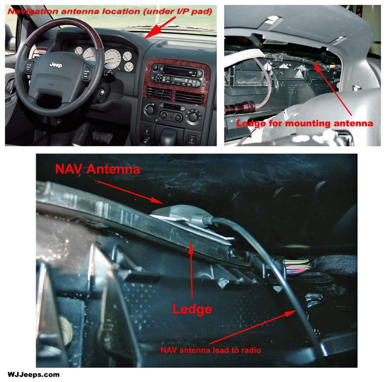 The RB1 Navigation Radio is designed to install directly into any 2002-2004 model Jeep Grand Cherokee, utilizing the existing factory wiring harnesses. It can also be installed into earlier models using a special radio harness adaptor cable. All steering wheel controls for the radio are retained, and while in the NAV mode these buttons will operate selected navigation functions. The RB1 will also operate the factory 10-disc CD changer if so equipped. The small flat antenna for the NAV system also needs to be mounted, under the dash behind the instrument cluster. It comes attached to a metal bracket and mounts with a peel 'n stick adhesive strip.
