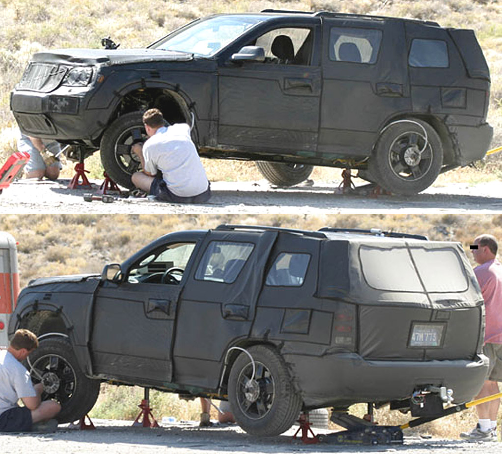 Spy photo of the upcoming redesigned 2005 Grand Cherokee "WK". Production starts next July with a launch date of September/October 2004. The all-new Jeep features Independent Front Suspension (IFS) and a Solid rear axle (SRA). A new 3.7 liter V6 engine will replace the I-6 and a powerful Hemi engine will be optional on some models.