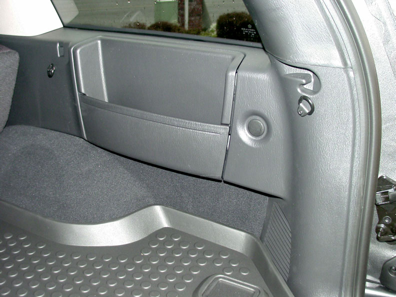 Note: it is possible to access the area where the 12v receptacle is located without removing the metal changer bracket, but the area to work in will be limited since the quarter trim can only be pulled back a short distance. The CD changer unit though must still be removed via its six side screws.