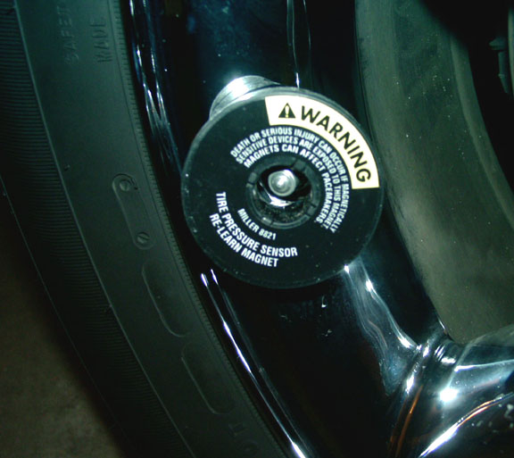 "REMOVE MAGNET FROM SPARE" (5-TIRE TPM SYSTEM ONLY)