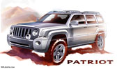Strong and capable, the Patriot concept is unmistakably Jeep, designed to appeal to compact SUV buyers who want traditional Jeep styling with best-in-class off-road capability. Jeep Patriot is rugged, exuding the brand’s key attributes of mastery, authenticity, freedom and adventure, but would still offer exceptional fuel economy, interior flexibility and utility at a great value.