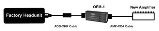 Using the OEM-1 interface to add an aftermarket head unit requires the OEM-1 unit plus one "A" cable and one "B" cable: