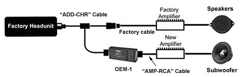 The OEM-1 interface adaptor kit is used when replacing or adding an aftermarket head units such as Kenwood, Panasonic, Alpine, Pioneer, etc. to the Infinity factory sound system. The OEM-1 has an 18 pin connector on one end and a 16 pin connector on the other. Once the two cables are chosen for the particular installation, just plug them into the OEM-1, plug them into the factory radio harness and then plug into the aftermarket stereo that is being installed. No wire connections to the factory harness or ccnnectors are required. The factory cables are not cut or removed - they are used.