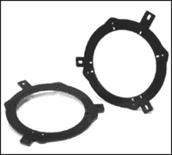 11. Speakers: Mounting templates Back to Accessories index Templates for mounting 6.5" round speakers into 6x9 factory front door openings (1999-2004 WJ). Several companies sell generic adaptor plates for fitting 6.5 inch speakers into a 6x9 openings. If you are planning to install a component set of speakers, some of these adaptors do not provide room for the separate tweeter and custom plates must be cut. Scosche now makes an injection molded adaptor that will allow for both the 6.5" speaker and a component tweeter - P/N 142 SA69. They also make one for the rear 6.5" speakers - P/N 142 SAC656. Even though aftermarket speakers will fit directly into the rear door holes, using the adaptor is easier and also a better fit for mounting the speaker. See Front door speaker installation and Rear door speaker installation.