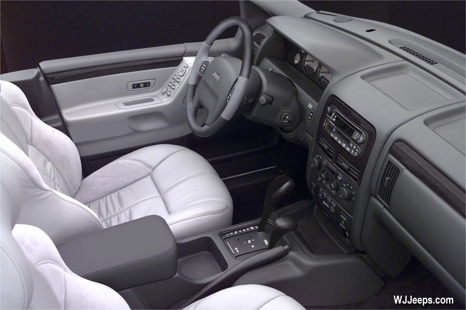 *Note per the interior photos shown above - these photos were obtained with some related "Black Pearl Series" press materials from a Jeep source in Europe. These photos show an "AutoStick" shift mechanism (with some sloppy photo touch-up) and control panel that is not on the Black Pearl Series vehicles, and in fact has never been featured on any Grand Cherokee model. It may have been that Jeep had plans to add the "AutoStick" feature to this or another model and later abandoned the idea. The "AutoStick" feature, however, will appear as an option on the new 2005 Grand Cherokee. |