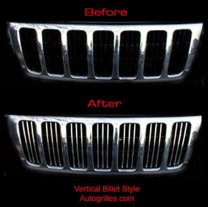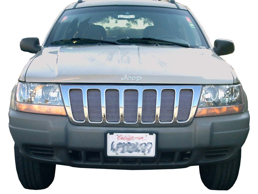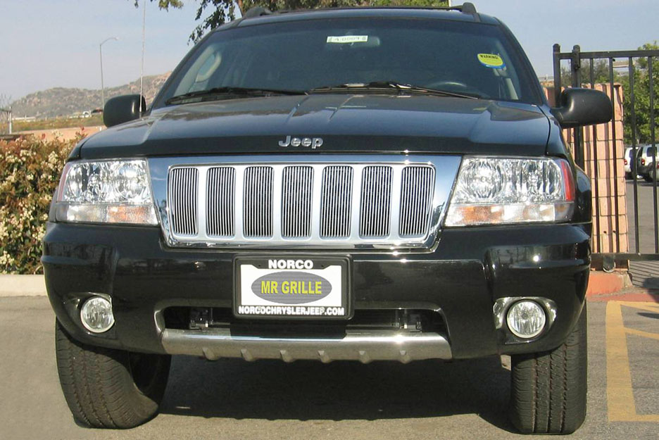9. Brushed aluminum billet grille insert from Mr. Grille. Shown installed on a 2004 Limited. The grilles are made from T-6 aluminum for strength and durability. These grills install in place of the existing black plastic backing. There is no cutting or drilling to the vehicle required. Other styles are also available for all 1993-2003 model Grand Cherokee's.
