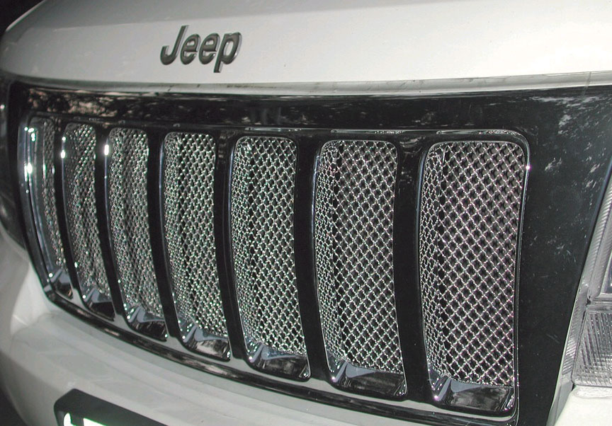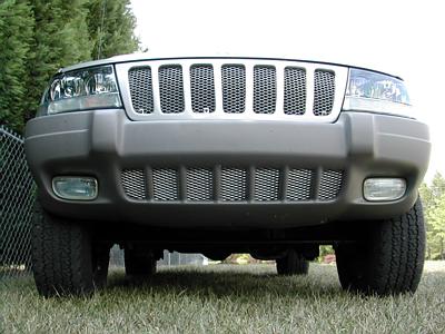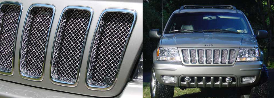 1. Stull Industries diamond wire grille insert model #2012, custom pre-cut from the factory. The grille insert features a 304 woven stainless steel mesh and 304 stainless steel rod. This specially engineered insert is designed to install without any modification to your Jeep and can be installed with common hand tools. Shown in photo # 1 is Chris Henry's 2001 Limited. The Stull insert for the WJ retails for around $130. More information can be found at Stull Industries.com.