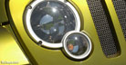 The classic Jeep design elements – the seven slot grille, large “eye” headlamps and the prominent windshield presence – are freshly nuanced and then enhanced by a purposeful lower-front bumper with rugged, oversized tow hooks, slightly exposed front suspension componentry and bolt-on fenders.
