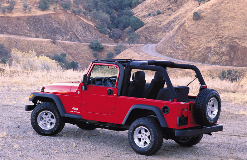 Standard features on the Jeep Wrangler Unlimited are full-steel doors with deep tinted windows, Sunrider™ soft-top, padded Sport Bar, air conditioning, AM/FM stereo radio with CD, easy access tip and slide front seats, fold and tumble rear seat, front and rear floor mats, next generation air bags and power steering.