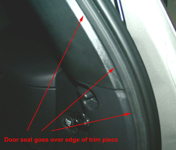Note: Make sure that all of the plastic guide pins and metal spring clips are aligned properly to their slots before pressing the trim pieces back in to place.