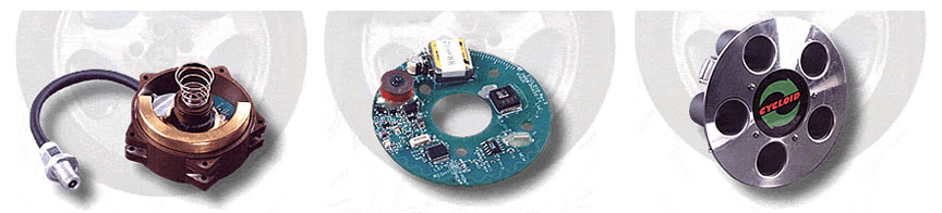 Inertia compressor pump, internal circuit board, and pump shown mounted inside wheel cap.